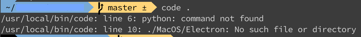 前幾天為了通用控制功能把我的M1 Macbook作業系統升上macOS 12.3 Monterey後,發現當要用** “code .” 指令**快速開啟VSCode是失效的且會出現以下錯誤訊息: